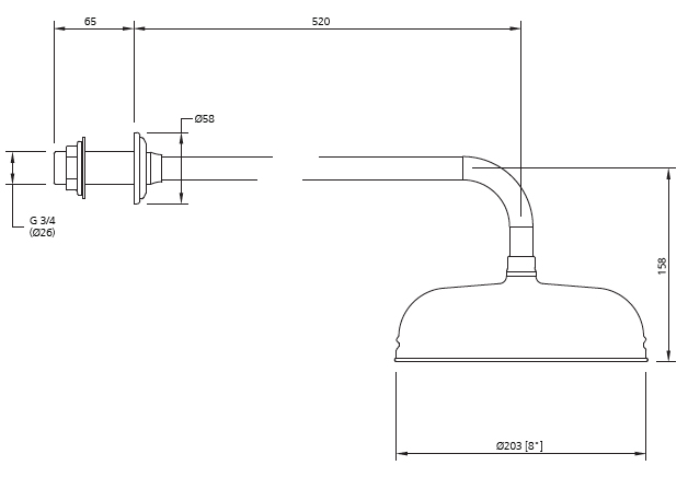 Lefroy Brooks Belle Aire eight inch shower rose on long arm RT 1775