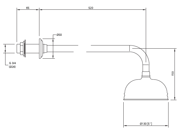 Lefroy Brooks Belle Aire five inch shower rose on long wall arm RT1773