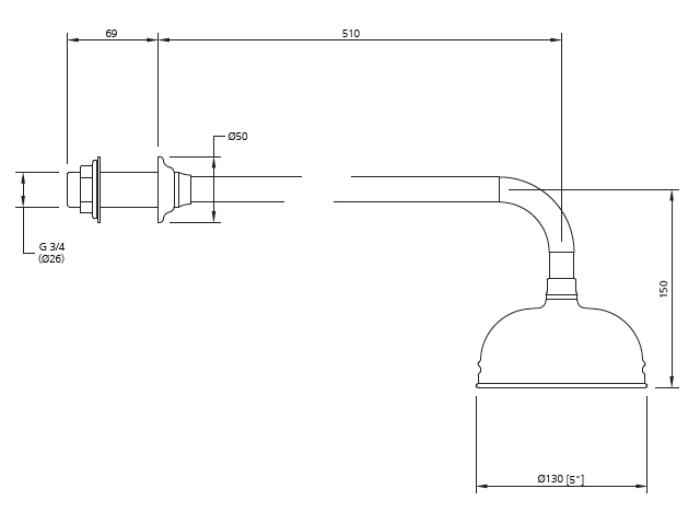 Lefroy Brooks Classic five inch shower rose on long wall arm LB 1773