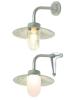 Impressive exterior light in a classic, timeless design. Available either on a round backplate or on a forked mounting for positioning the light on the corner of a building, in either galvanised iron or raw sandblasted bronze.