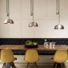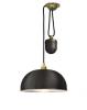 A contemporary dome shaped rise & fall pendant light in brushed steel with brass detailing.