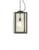 Exterior square box pendant in weathered brass, externally glazed and available in three sizes.