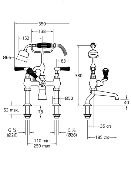 Lefroy Brooks Classic bath shower mixer with black lever handles BL 1100