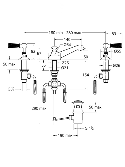 Lefroy Brooks Classic black lever three hole basin mixer with pop-up waste BL 1220