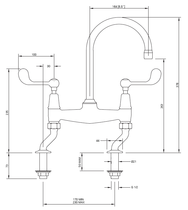 Lefroy Brooks Classic Connaught lever basin bridge mixer with 6.5" spout CL 9007