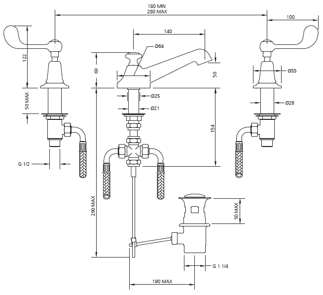 Lefroy Brooks Classic Connaught lever three hole basin mixer with pop-up waste CL 1220