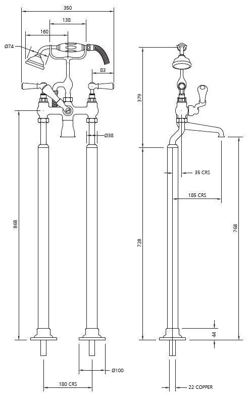 Lefroy Brooks Classic white lever bath shower mixer with standpipes WL 1144. Also available with exteneded legs for more information contact bathrooms@hollowaysofludlow.com