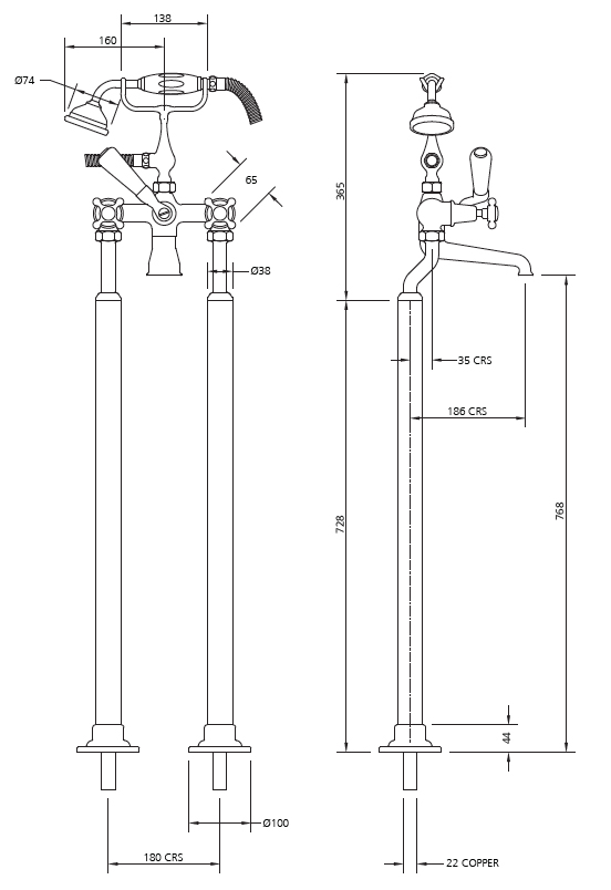 Lefroy Brooks Connaught free standing bath shower mixer CH 1144. Also available with extended legs for more information please contact bathrooms@hollowaysofldulow.com