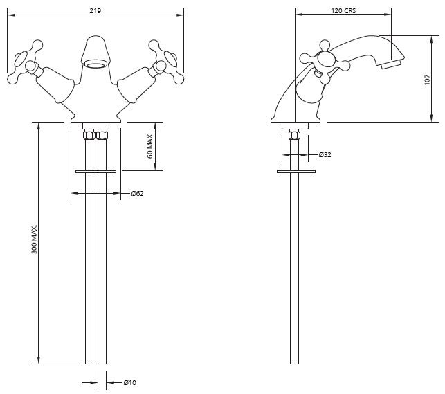 Lefroy Brooks Connaught monobloc basin mixer tap with plug and chain waste CHS1189