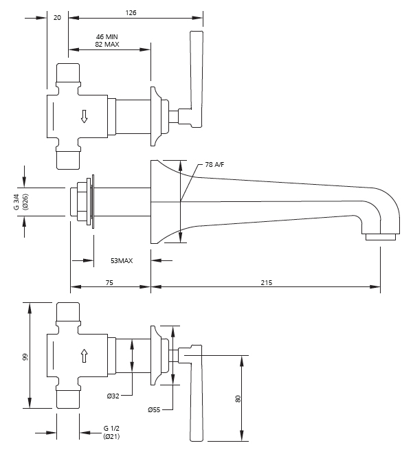 Reach: 215 mm