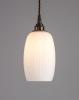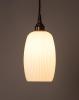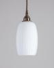 The Gillespie pendant carries an opal glass shade in a 1950s or 60s style. Now bang up to date again, the gently ribbed Italianate design emits a soft, warm glow when illuminated. This pendant is also availble with an IP rated cable which makes it suitable for bathroom use.