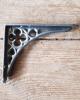 A robust and heavy shelf bracket with stunning Gothic detail made of cast iron and given a pewter finish. These brackets are cast from an original antique pattern and feature the Rd lozenge date of 1879.